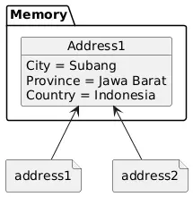 tapi address1masih ikut berubah karena coding address2.City = "Bandung" masih mengarah ke reference address1